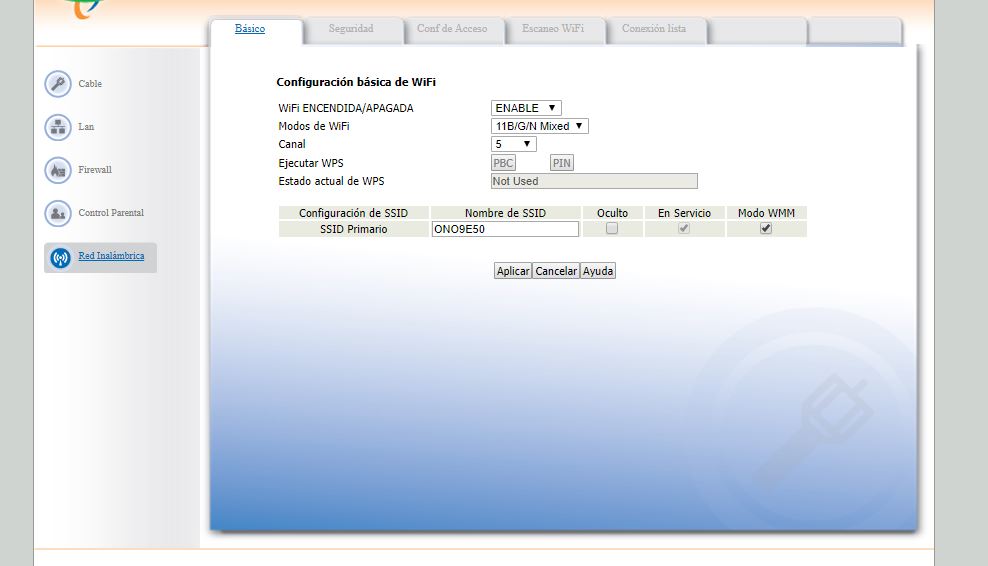 Elegimos la opción «WiFi inalámbrica» o «Wireless», según si está en español o inglés, y nos saldrá una página como esta.